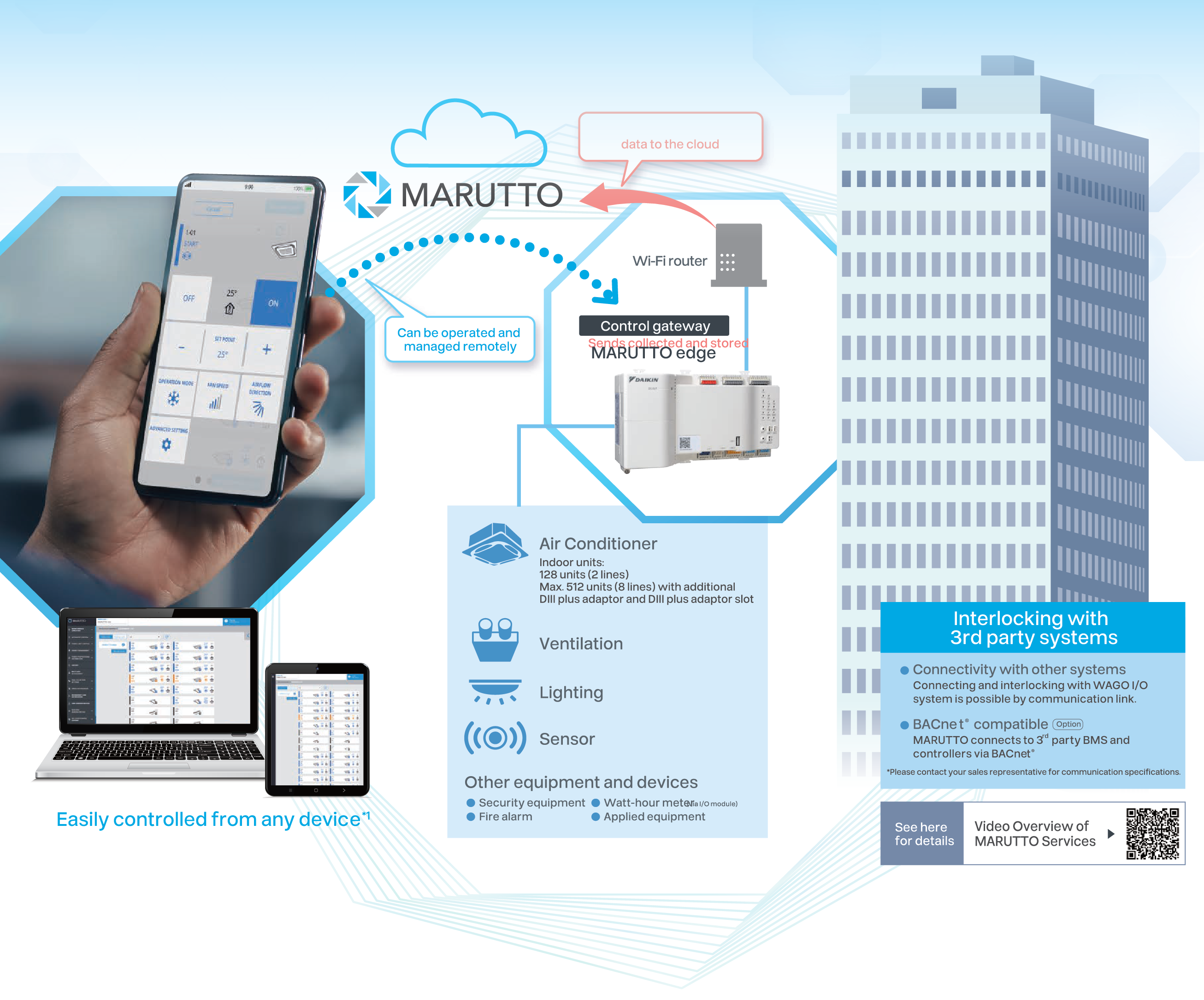 Daikin's Remote Monitoring and Control System empowers building owners with advanced tools to monitor, control, and optimize their air-conditioning systems in real time—maximizing comfort, reliability, and energy savings. As a pioneer in providing 24/7 access to live diagnostics and system performance, Daikin offers an all-in-one solution that not only predicts faults before they happen, but also ensures systems are continuously operating at their optimal efficiency.