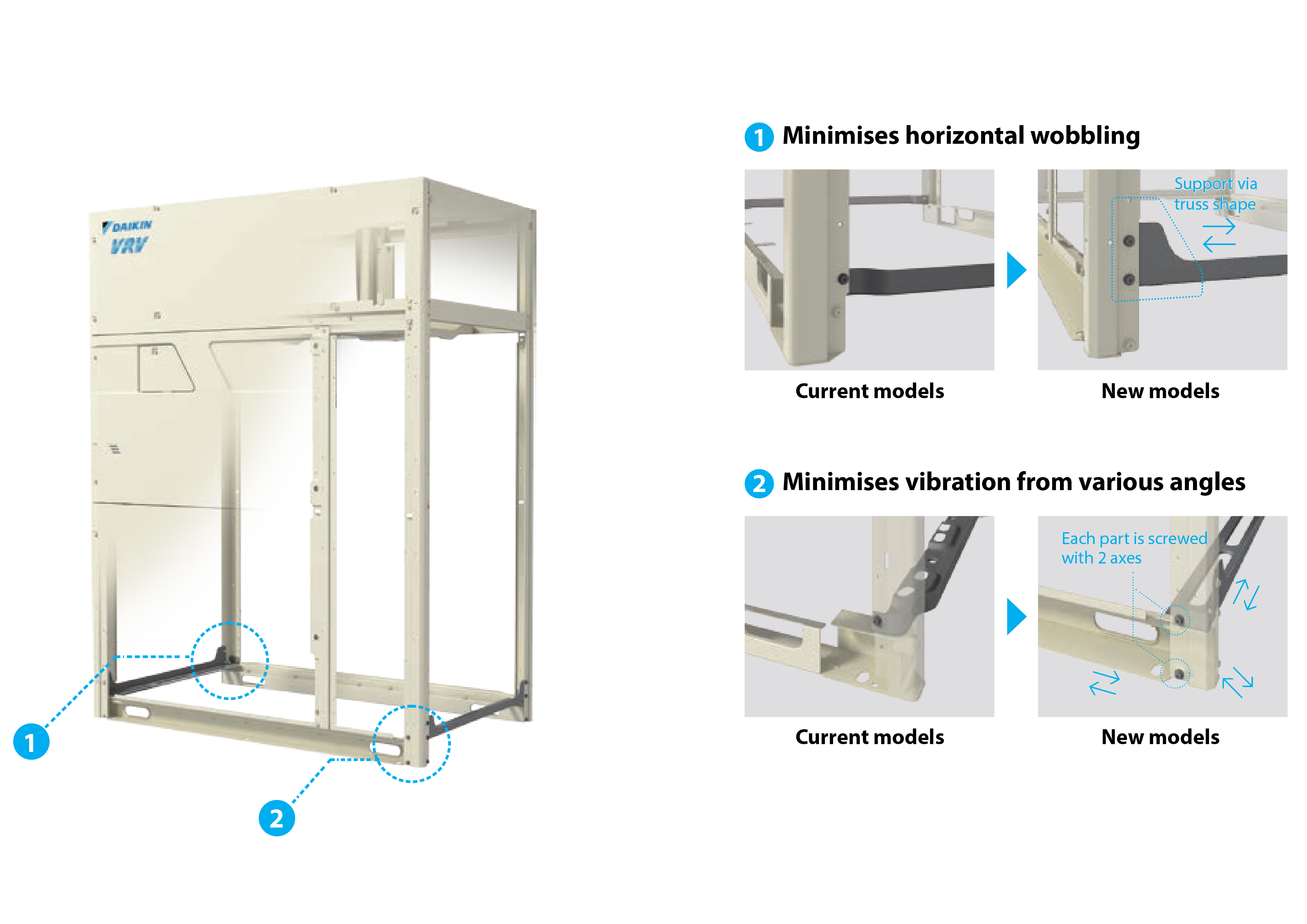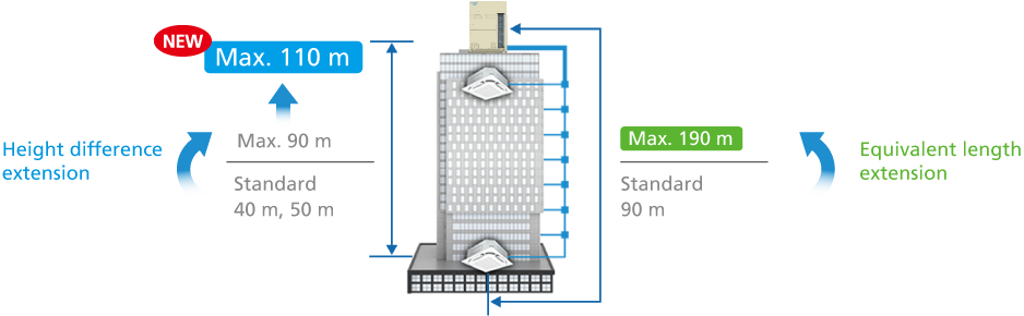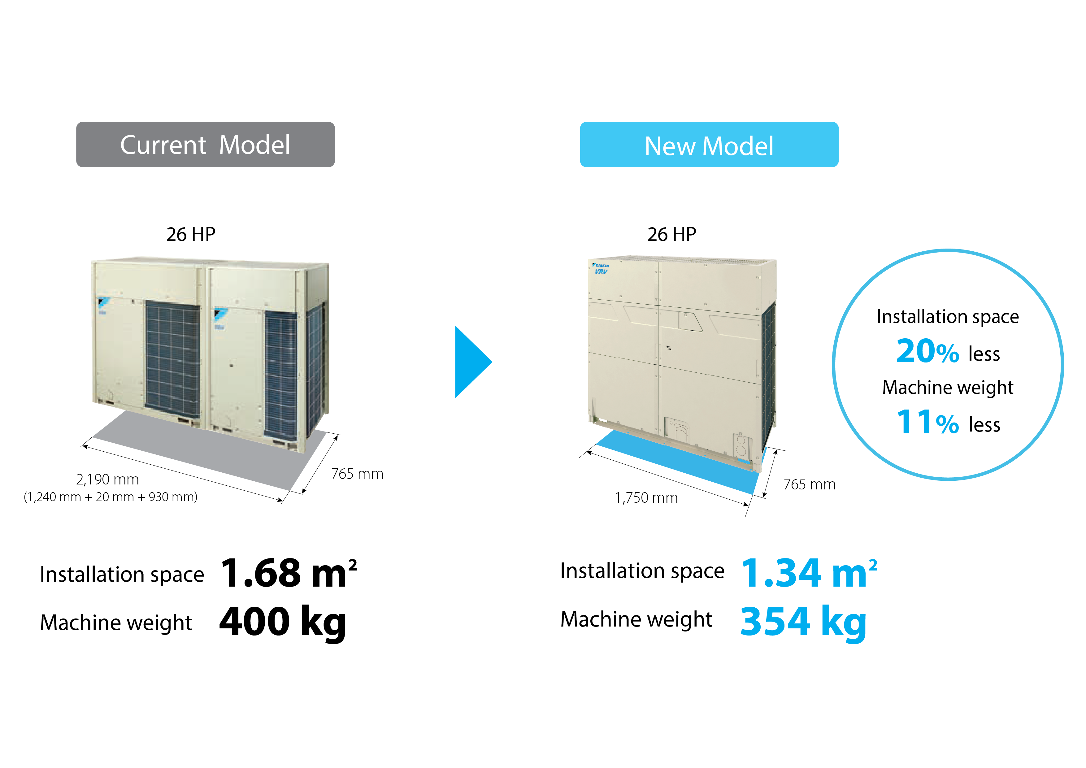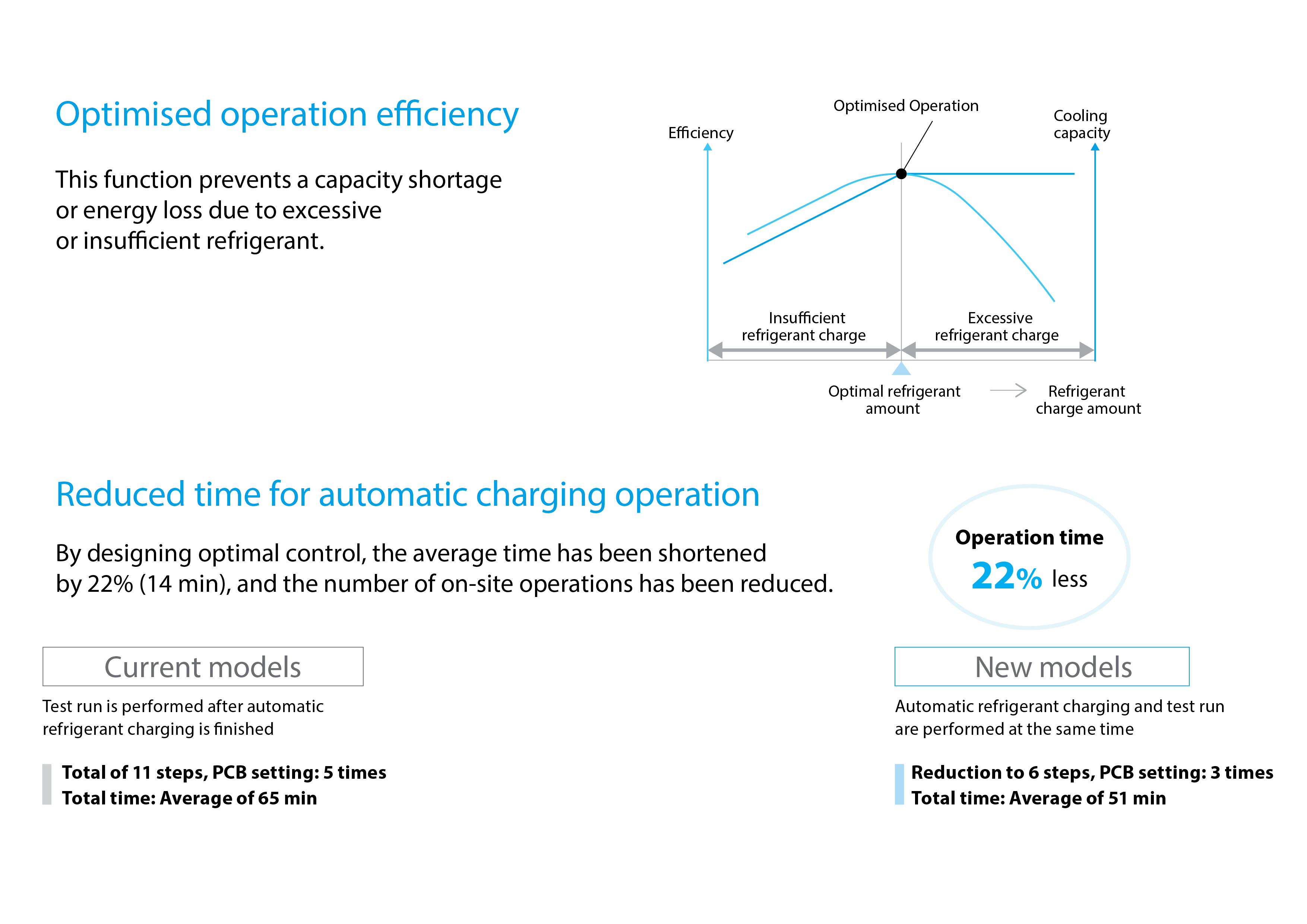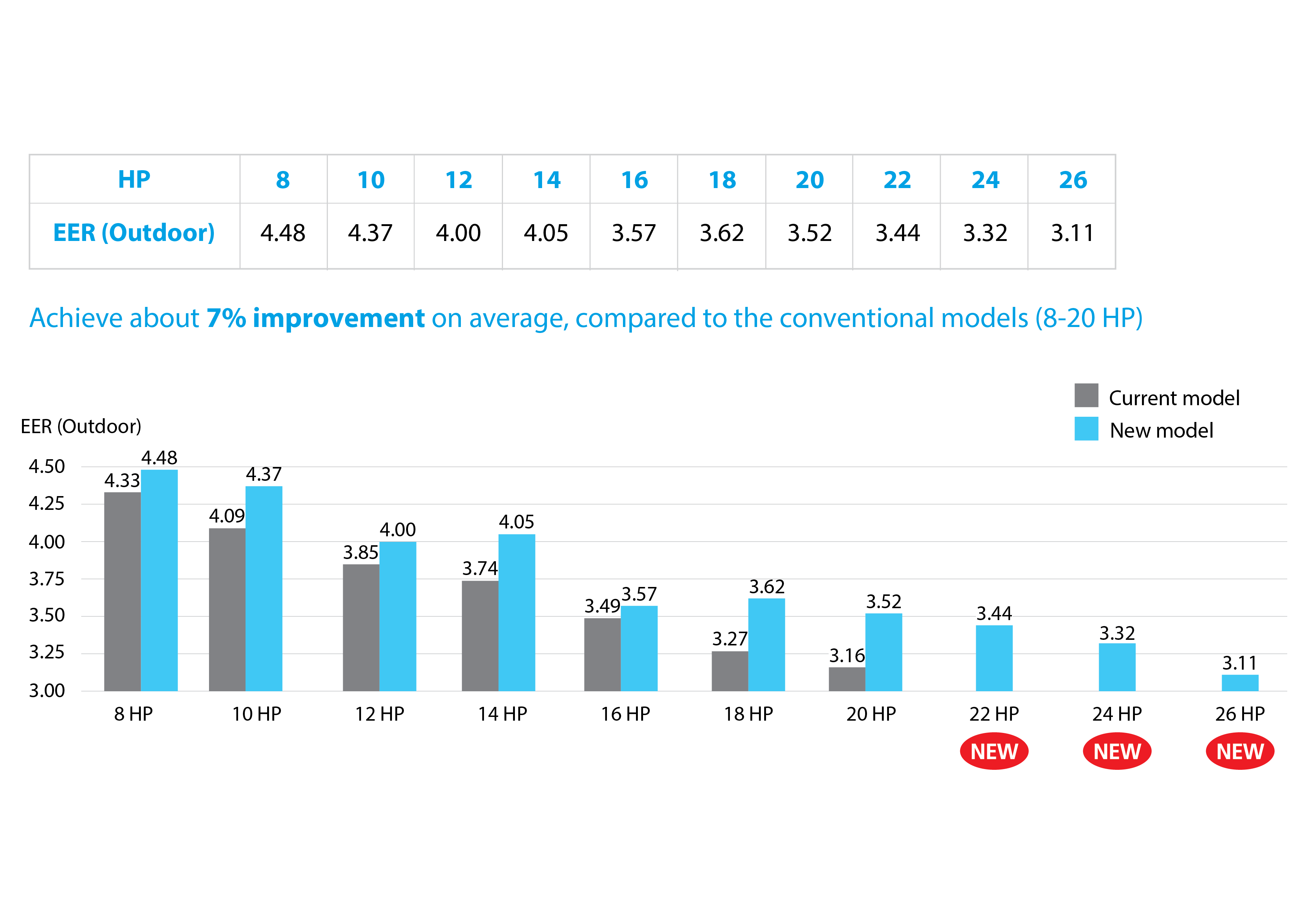 | Further improvement of energy saving by high efficiency compressor and VRT Smart II control. | |