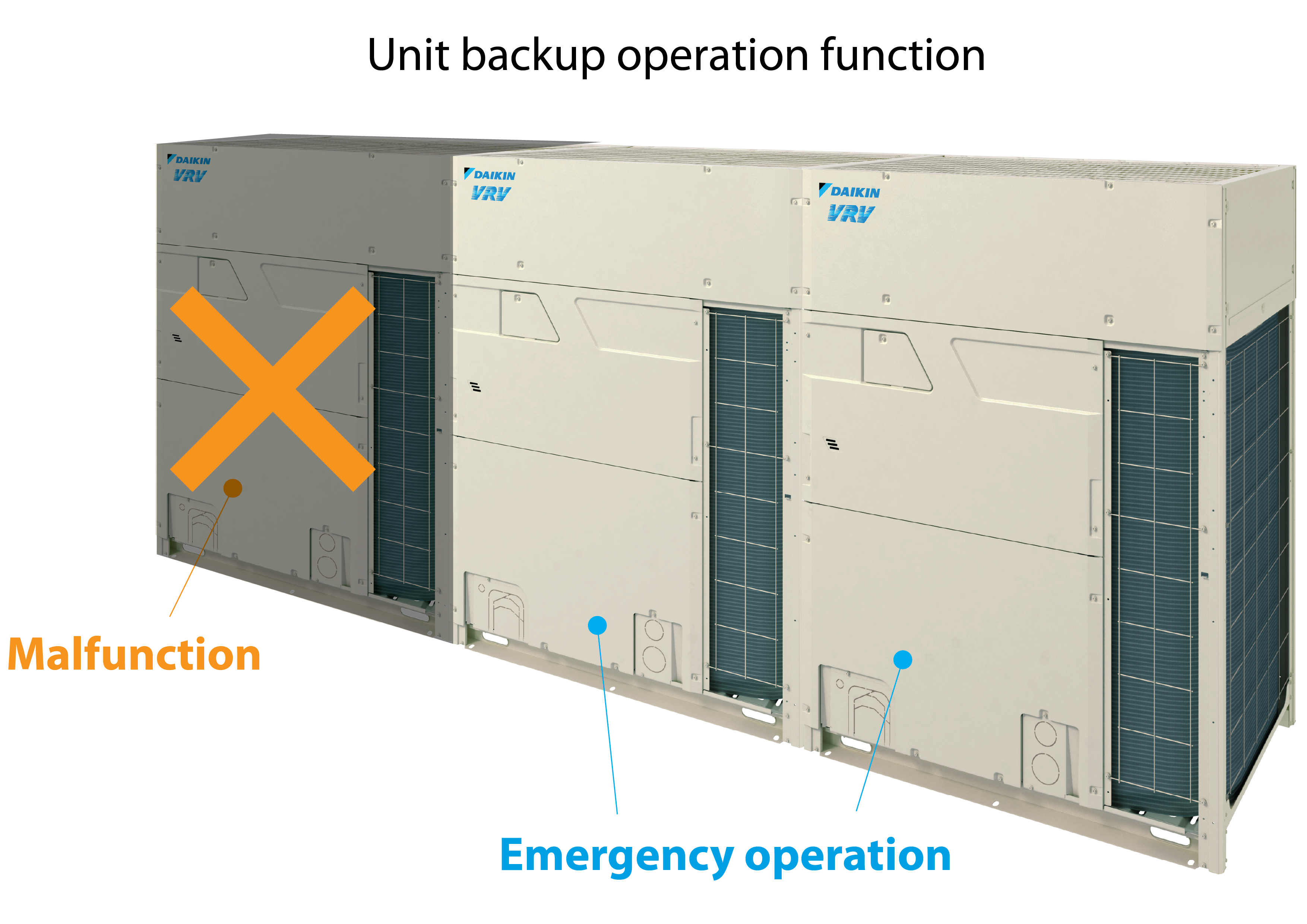 If malfunction occurs in an outdoor unit, the backup operation is supported. (Only for multiple outdoor units)