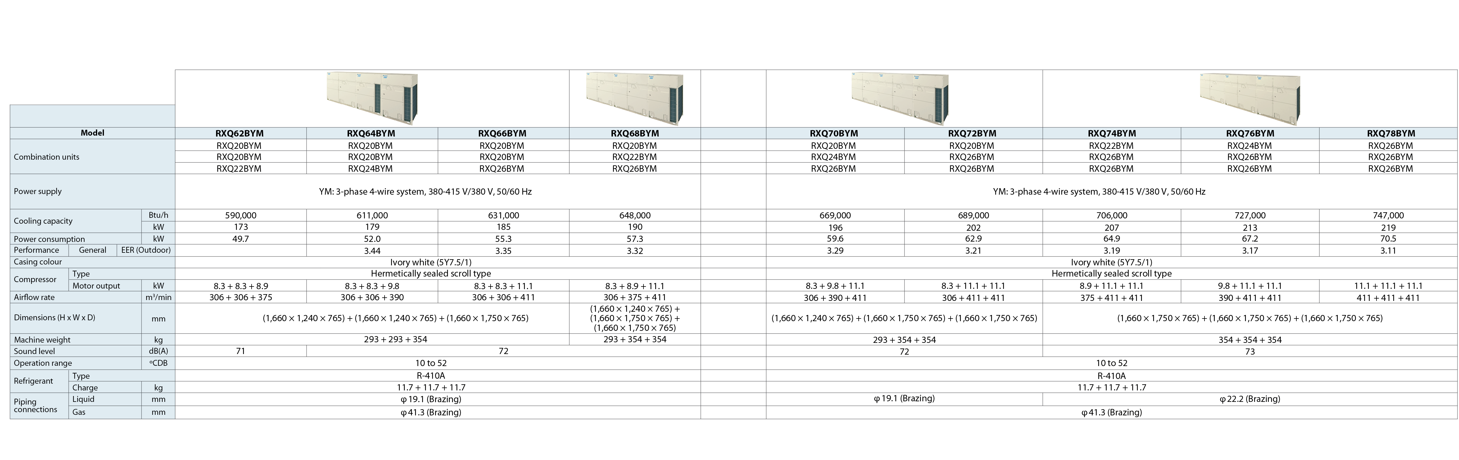 In addition to the conventional combination of two casings, a new large single unit for 22, 24, 26 HP has been added,expanding the range of multiple outdoor units up to 78 HP.